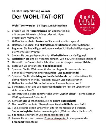 Geht mit uns in der Bürgerstiftung Weimar auf Wohl-Täter-Suche: