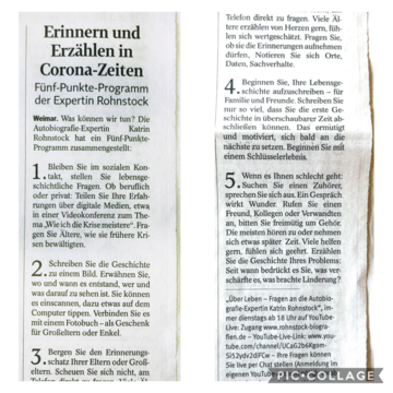 Als besonderen Leitfaden möchten wir euch ein Fundstück ans Herz legen: Artikel aus der Thüringer Landeszeitung von Dienstag den 14. April 2020: