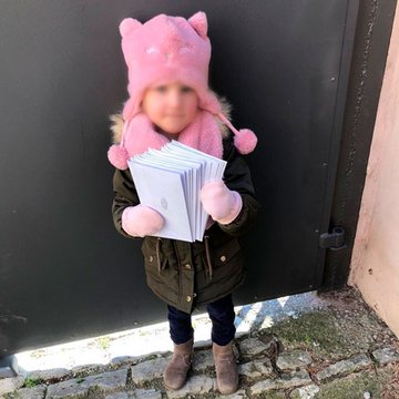 Insgesamt über 35 Karten schrieben und schnitten Sabine und ihre Kinder mit viel Hingabe in Heimarbeit. Eine ganz besonders süße Dame übernahm sogar die Arbeit als Postbotin.