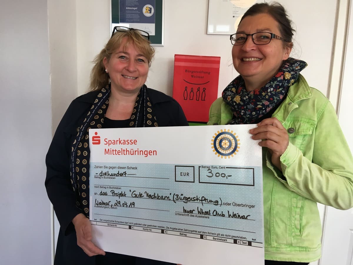 Der Inner Wheel Club Weimar überreicht Spendenscheck an Weimars Gute Nachbarn