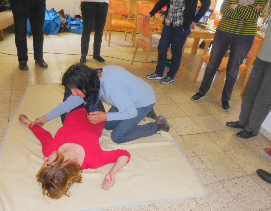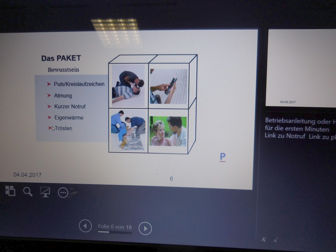 An diesem von eigenen Beispielen gespickten, von konkreten Erfahrungen und Hilfefällen aus der Praxis und vielen Übungen durchsetzten Abend trainierten 10 Gute Nachbarn wieder die Erste Hilfe miteinander. Der eine oder andere hat schon während der Seniorenbegleitung und im persönlichen Umfeld erste Hilfe leisten müssen und fühlte sich nach der Auffrischung bestätigt und gestärkt, zu helfen, wenn es Not tut. Viele unserer Fragen haben wir gemeinsam bearbeitet, darunter folgende: