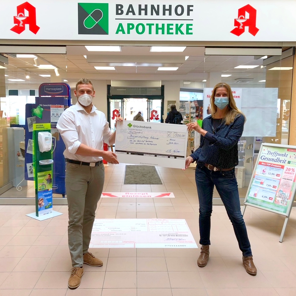 Der Betrag kam durch Spenden der Kunden der Weimarer „Treffpunkt Gesundheit Apotheken“ - Bahnhof Apotheke und Apotheke am Goetheplatz - zusammen. Beide Filialen verschenken jedes Jahr Kalender an ihre Kunden und bitten dabei um freiwillige Spenden für ein soziales Projekt vor Ort.