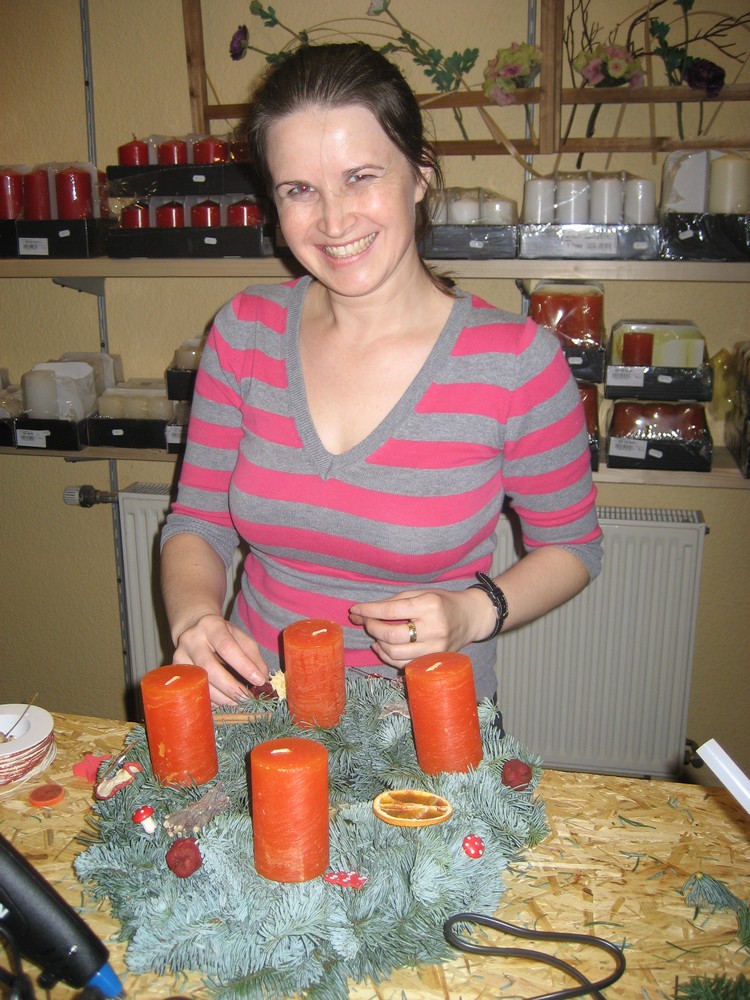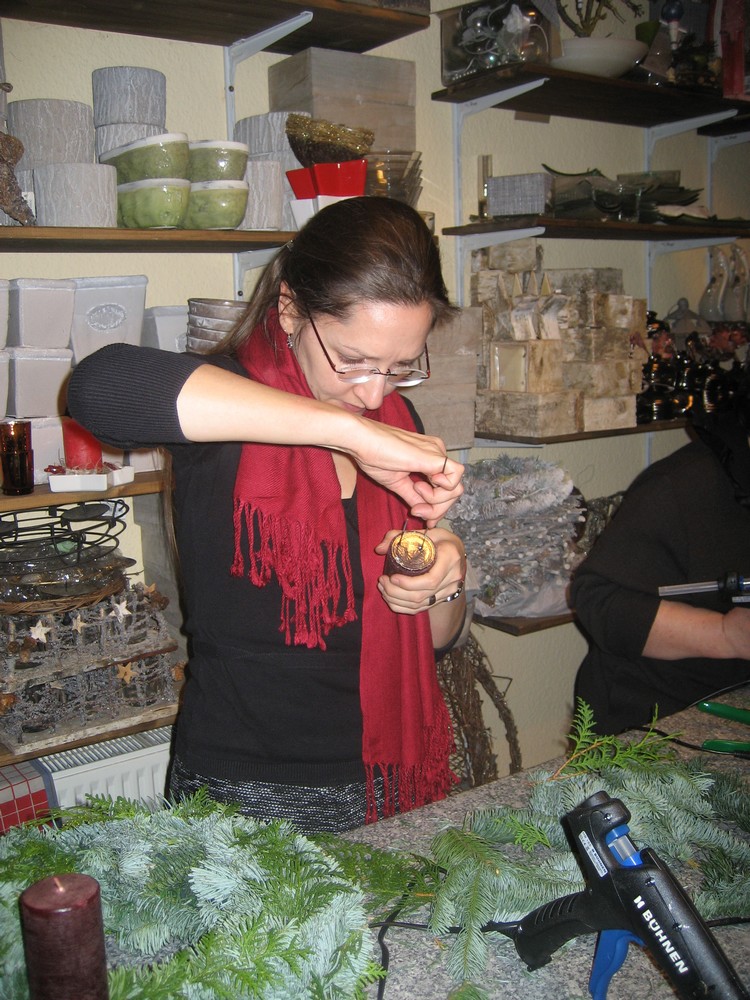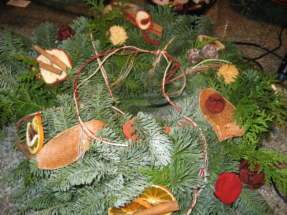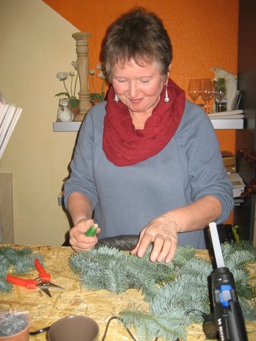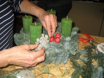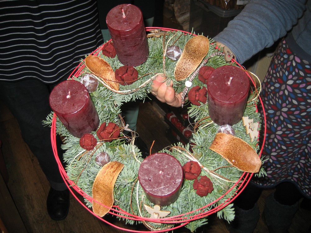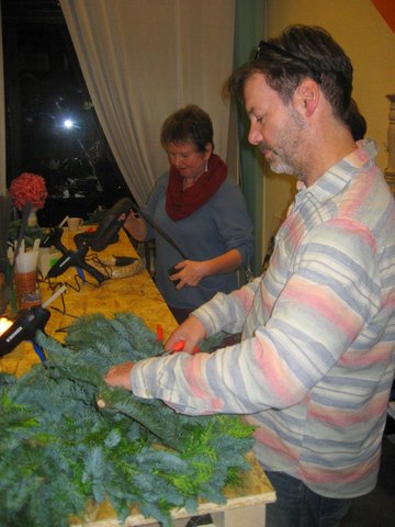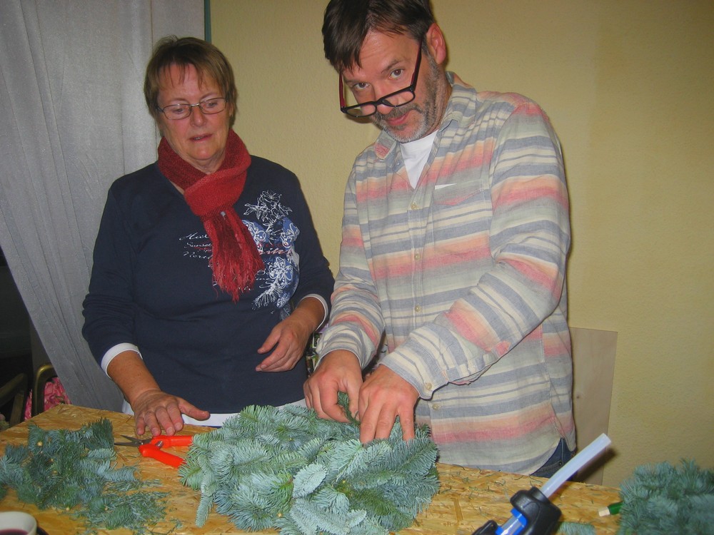 Selbst mit den eigenen Händen etwas schaffen und Andere dazu anzustiften, war für viele Mitstreiter eine neue, aber gute Erfahrung. Das gegenseitige Bewundern der gänzlich selbst geschaffenen Kreationen in Tannengrün und bei Kerzenschein bereitete unseren Guten Nachbarn viel Freude und stimmte die Gruppe auf die nahe Adventszeit ein.