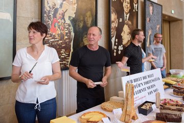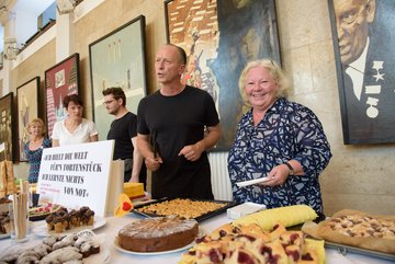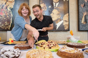 Die „Guten Nachbarn“ der Bürgerstiftung Weimar freuen sich über das großartige Engagement der Mitarbeiterinnen und Mitarbeiter des DNT. Diese haben gebacken und Ihr großartiges Gebäck gegen eine Spende verteilt. Kuchen kamen auch von Stifter*innen der Bürgerstiftung Weimar, von den „Guten Nachbarn“, von der Kuchenmanufaktur Koriat und der Brotklappe in allen Formen und Variationen. Auch Hasko Weber (Intendant des DNT) und Doris Elfert (Vorstandsvorsitzende der Bürgerstiftung) ließen es sich nicht nehmen, die Kuchen an Mann, Frau und Kind zu bringen. Um 17 Uhr war die Kuchentafel leergefegt. Wir danken allen Beteiligten und freuen uns über 587,96 Euro Spenden für das ehrenamtliche Seniorenprojekt „Weimars Gute Nachbarn“. Die 26 Seniorenbegleiter*innen suchen immer Verstärkung. Denn alleinlebende Seniorinnen und Senioren die sich einen regelmäßigen Besuch wünschen, gibt es viele in Weimar.