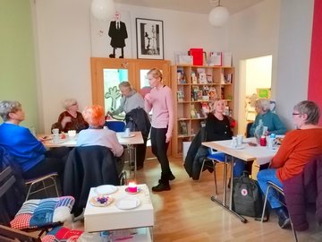 Die Gäste ließen sich Kaffee, Tee und weihnachtliches Gebäck munden. Projektleiterin Sabine berichtete aus den Veranstaltungen und Entwicklungen des Jahres 2022.