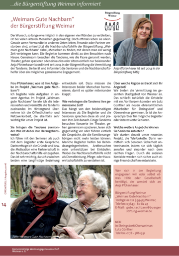 Vorstellung in der Genossenschaftszeitung der GWG 09.01.2017 Anja Pfotenhauer im InterviewKlick auf die Grafik vergrößert die Ansicht. Zurück
